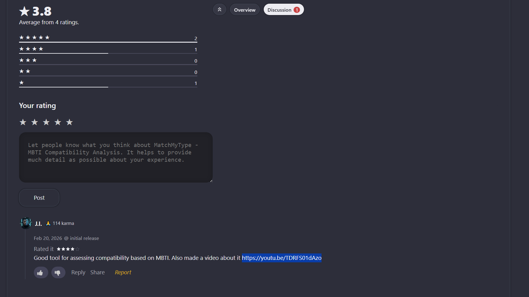 MatchMyType: a tool embed with AI technology designed to analyze compatibility between different Myers-Brigg Personality Types, also known as MBTI, while using information like blood type, gender, and zodiac signs in addition to the system. It allows users to explore and learn about how their personality type navigates relationships such as romantic partnerships, workplace dynamics, and friendships. It emerged on January 15, 2026, and is available to access online through clicking on the website link.